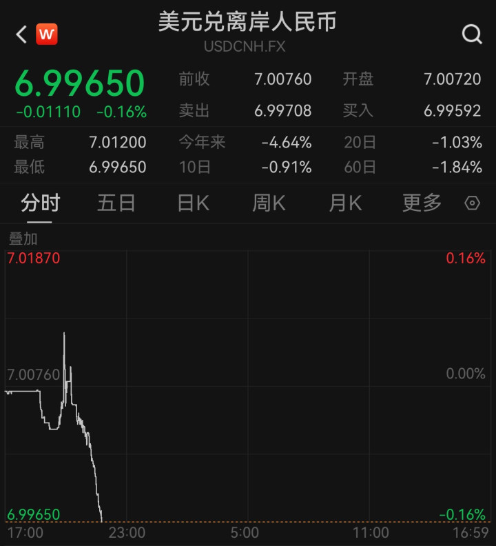 中新经纬12月25日电(董湘依)12月25日股票配资哪家质量好,Wind数据显示,离岸人民币对美元升破7.0大关,最高触及6.9965,为2024年9月以来首次。在岸人民币对美元升破7.01关口,现报7.0062,创2024年9月27日以来新高。